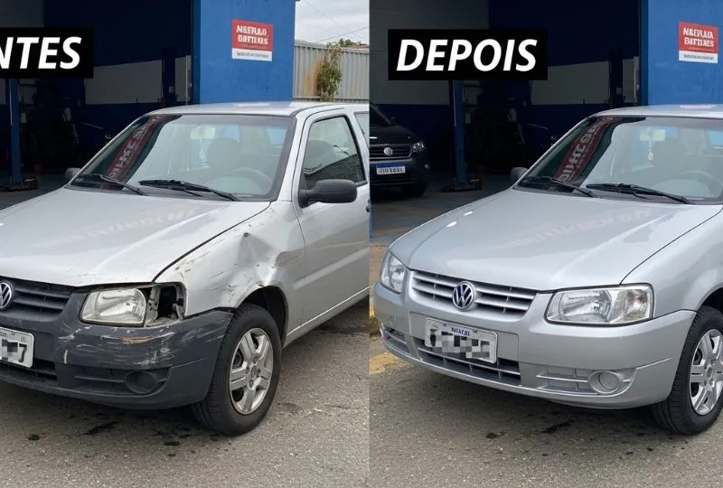 onde há necessidade de desamassar, alinhar estrutura e repintar diversas partes, o custo pode chegar facilmente a R$ 3.000 ou mais, dependendo da extensão dos danos.